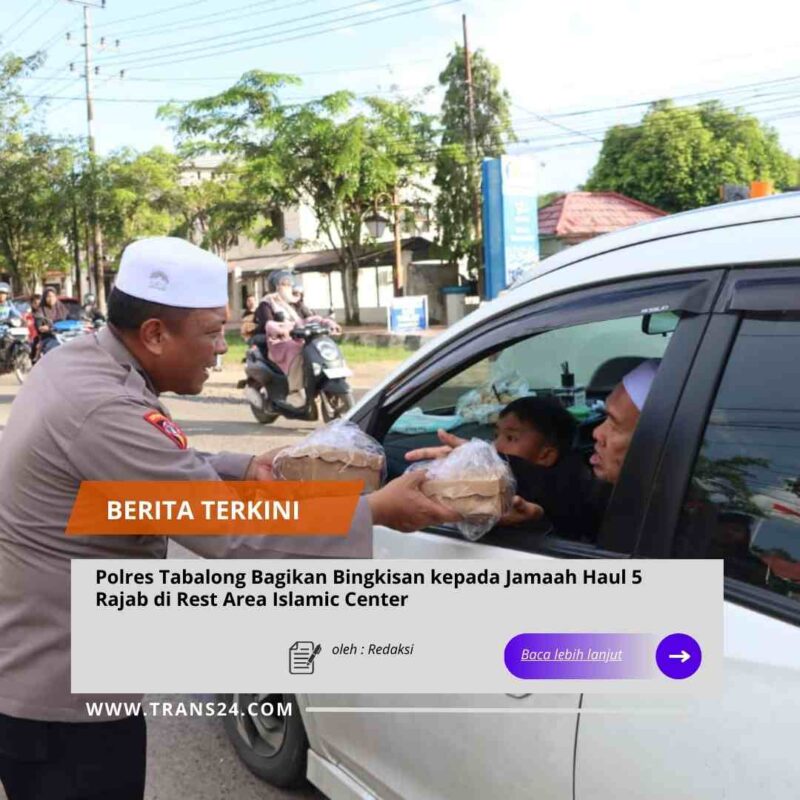 Polres Tabalong//trans24.id – Polres Tabalong melaksanakan kegiatan pembagian bingkisan kepada jamaah haul yang melintas dan menuju Sekumpul, Martapura, Kabupaten Banjar, dalam rangka peringatan 5 Rajab 1447 Hijriah. Kegiatan tersebut berlangsung di Rest Area Simpang Empat Islamic Center, Kabupaten Tabalong, Jumat (26/12/2025) sore.