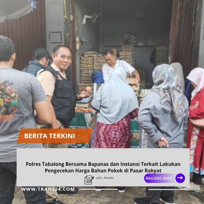 Tabalong, // trans24.id //-Dalam rangka menjaga stabilitas harga dan ketersediaan bahan pokok di wilayah Kabupaten Tabalong, Satreskrim Polres Tabalong yang dipimpin oleh kasat Reskrim AKP Danang Eko Prasetyo, S.Sos., M.M bersama Badan Pangan Nasional (Bapanas) dan instansi terkait melaksanakan kegiatan pengecekan harga bahan pokok serta pedagang responden SP2KP di Pasar Rakyat Kabupaten Tabalong, Kamis (05/02/2026) pagi.