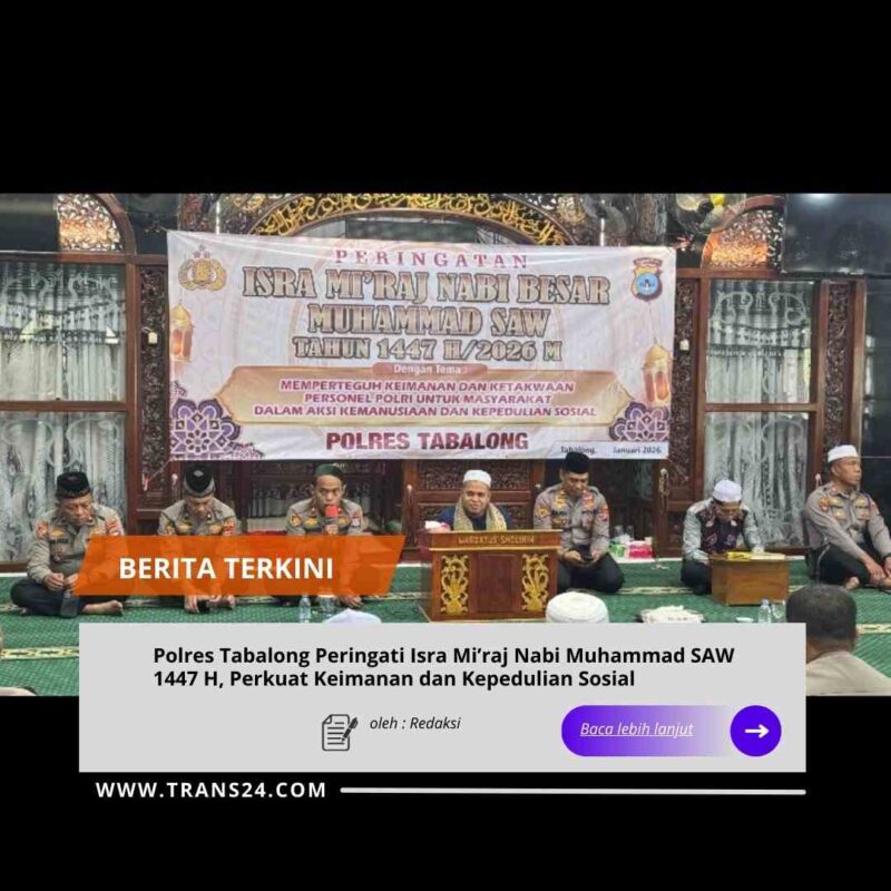 Melalui peringatan Isra Mi’raj Nabi Muhammad SAW 1447 H ini, Polres Tabalong berkomitmen untuk terus memperkuat keimanan, ketakwaan, dan kepedulian sosial seluruh personel dan ASN, guna mewujudkan Polri yang Presisi, humanis, dan semakin dicintai masyarakat.