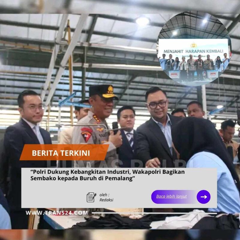 Pemalang, Jawa Tengah // trans24.id – Wakil Kepala Kepolisian Republik Indonesia (Wakapolri) Komjen Pol. Prof. Dr. Dedi Prasetyo, S.H., M.Hum., M.Si., M.M., membagikan paket sembako kepada ribuan buruh pada momentum peresmian kembali operasional PT Akarsa Garment Indonesia di Kabupaten Pemalang, Jawa Tengah