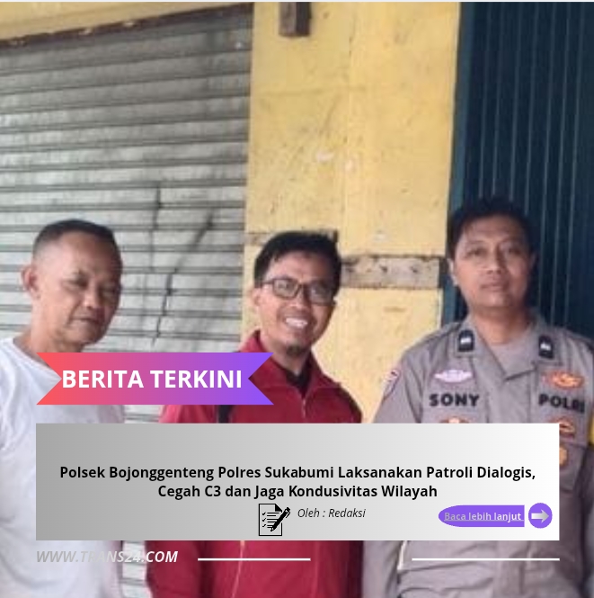 Sukabumi, // trans24.id – Dalam rangka menjaga situasi keamanan dan ketertiban masyarakat (kamtibmas) tetap aman dan kondusif, jajaran Polsek Bojonggenteng Polres Sukabumi melaksanakan kegiatan Patroli Dialogis di wilayah hukum Polsek Bojonggenteng, Senin siang, 09 Februari 2026.
