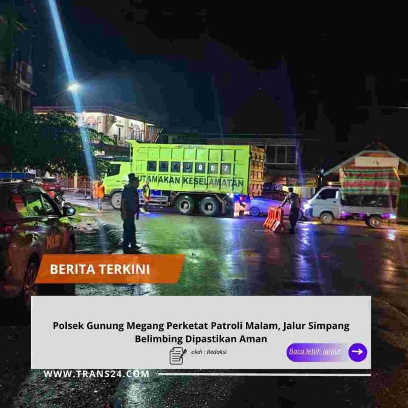 MUARA ENIM, // trans24.id // – Polsek Gunung Megang, Polres Muara Enim, terus meningkatkan patroli malam hari guna memastikan keamanan dan kenyamanan masyarakat, khususnya pengguna jalan yang melintas di jalur Simpang Belimbing hingga perbatasan Kabupaten PALI. Patroli ini dilakukan sebagai langkah antisipasi terhadap aksi pemalakan dan pungutan liar yang dinilai sangat meresahkan, Kamis malam, (22/1/26).