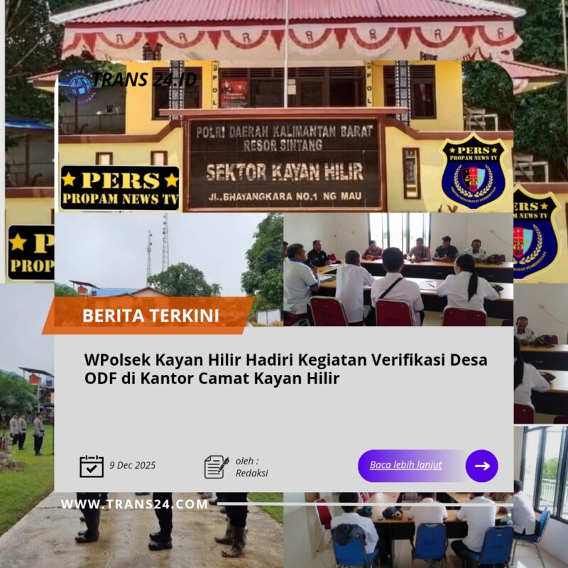 Sintang Kalbar//trans24.id  – Jajaran Polsek Kayan Hilir turut menghadiri kegiatan verifikasi Desa Open Defecation Free (ODF) yang diselenggarakan di Kantor Camat Kayan Hilir. Kegiatan ini berlangsung dalam suasana formal namun penuh semangat kebersamaan, dengan dihadiri oleh unsur pemerintahan kecamatan, perangkat desa, pihak kesehatan, serta perwakilan TNI–Polri. Rabu (10/12/2025).