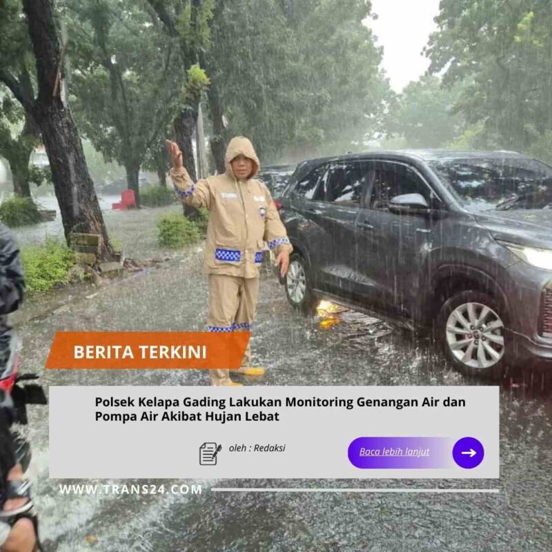 Jakarta Utara //trans24.id Polsek Kelapa Gading, Polres Metro Jakarta Utara, melakukan monitoring intensif terhadap genangan air dan operasional pompa air di wilayah hukumnya akibat curah hujan tinggi yang terjadi pada Senin pagi (12/1/2026).