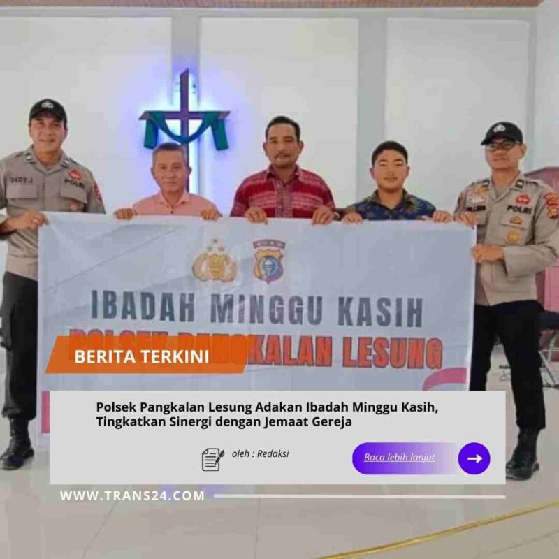 Polsek//trans24.id Pangkalan Lesung menggelar kegiatan Ibadah Minggu Kasih pada Minggu (11/01/2026) bertempat di Gereja Methodis Efrat, Km. 40, Kelurahan Pangkalan Lesung, Kecamatan Pangkalan Lesung. Kegiatan ini dipimpin langsung oleh Kapolsek Pangkalan Lesung, AKP Lambok Hendriko, S.H., beserta anggota.