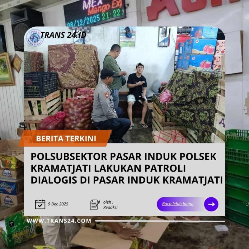 Jakarta Timur//trans24.id – Personil Polsubsektor Pasar Induk Polsek Kramatjati, AIPTU SUHONO, melaksanakan patroli dialogis bersinergi dengan petugas security setempat di Pasar Induk Kramatjati Jakarta Timur. Kegiatan ini bertujuan untuk mengantisipasi gangguan keamanan dan ketertiban masyarakat (Guantibmas) demi situasi yang aman dan kondusif.