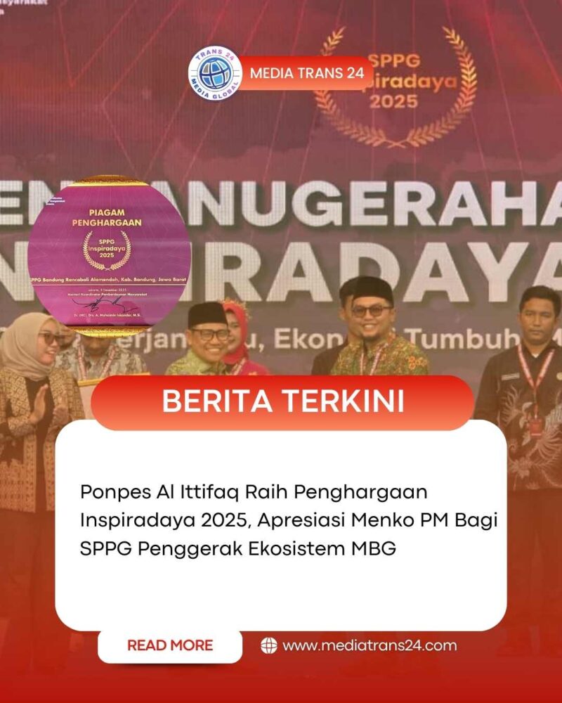 JAKARTA//trans24id – Koperasi Pondok Pesantren (Kopontren) Al Ittifaq di Jalan Ciburial Desa Alamendah Kecamatan Rancabali Kabupaten Bandung meraih penghargaan dari Kementerian Koordinator Pemberdayaan Masyarakat (Kemenko PM) di ajang Inspiradaya 2025 di Jakarta, Selasa 9 Desember 2025.