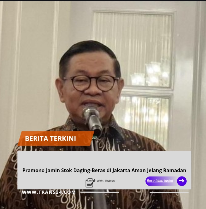 Jakarta, // trans24.id //- Gubernur DKI Jakarta Pramono Anung memastikan pasokan pangan di Jakarta tetap aman meski cuaca buruk melanda sejumlah daerah. Ia menegaskan stok kebutuhan pokok, termasuk daging dan beras, dalam kondisi mencukupi menjelang bulan puasa.