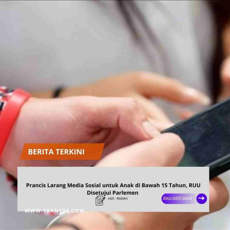 Paris, // trans24.id //-Anggota parlemen Prancis meloloskan rancangan undang-undang (RUU) yang melarang penggunaan media sosial bagi anak-anak di bawah usia 15 tahun, sebuah langkah yang didorong Presiden Emmanuel Macron untuk melindungi generasi muda dari paparan layar berlebihan.