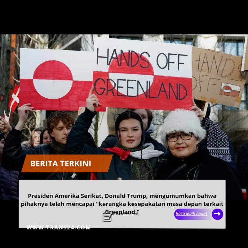 Presiden Amerika Serikat, Donald Trump, mengumumkan bahwa pihaknya telah mencapai “kerangka kesepakatan masa depan terkait Greenland.”