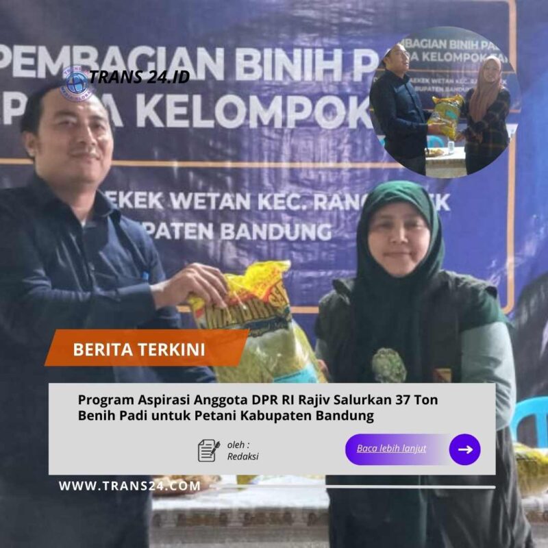 KAB. BANDUNG//trans24.id – Program aspirasi Anggota DPR RI Komisi IV dari Partai NasDem, Rajiv, berupa bantuan benih padi kepada kelompok tani se-Kabupaten Bandung, dilaksanakan pada Rabu (17/12/2025).