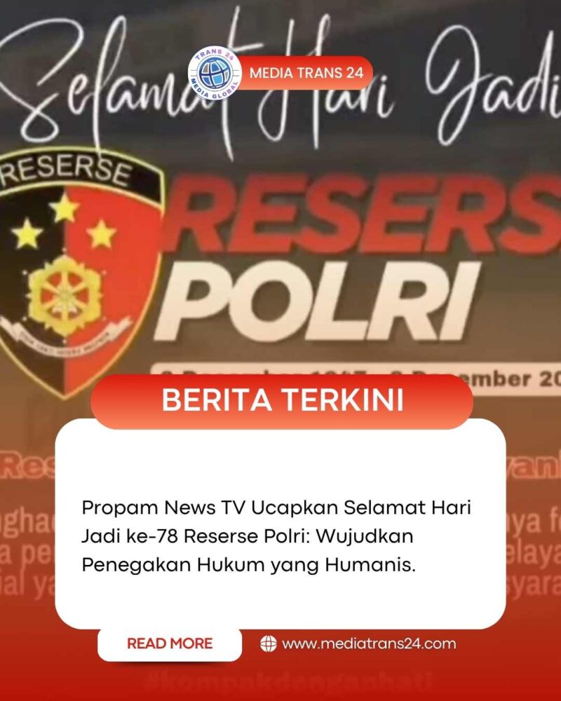 GARUT//trans24.id 8 Desember 2025 – Redaksi Propam News TV hari ini turut menyampaikan ucapan selamat dan apresiasi setinggi-tingginya kepada jajaran Reserse Kepolisian Republik Indonesia (Polri) yang memperingati Hari Jadi ke-78.