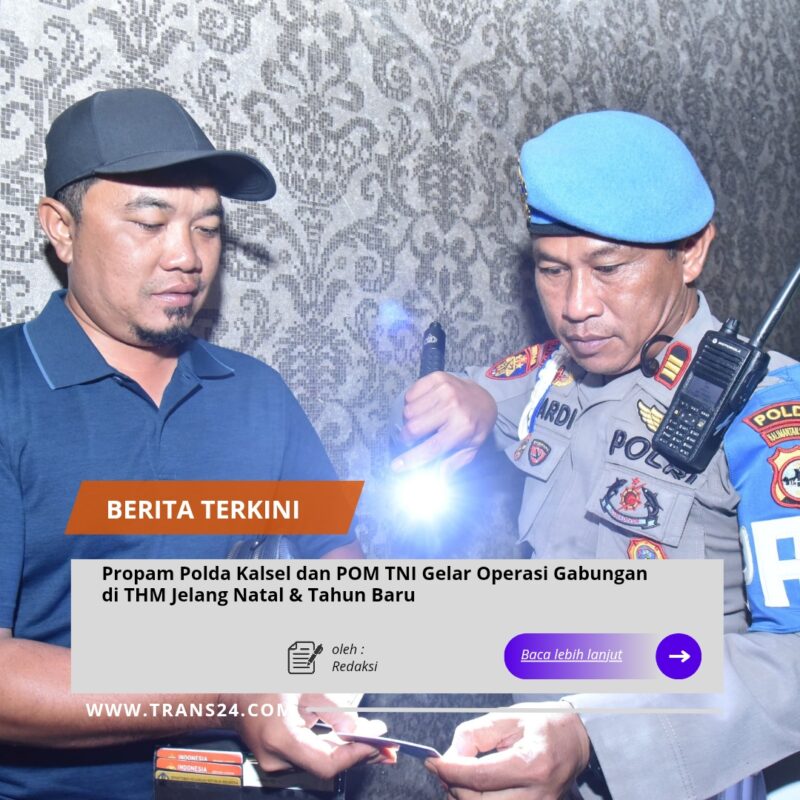 “Operasi ini merupakan langkah preemtif dan preventif untuk menjaga citra dan kepercayaan masyarakat terhadap institusi TNI dan Polri. Kita ingin pastikan tidak ada anggota yang melanggar ketentuan, terutama di tempat hiburan, khususnya pada momen jelang perayaan Natal dan Tahun Baru ini,” tegas Kabid Propam Polda Kalsel Kombes Pol Hery Purnomo.