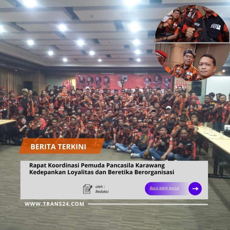 Karawang, 20 Desember 2025 // trans24.id  – Ormas Pemuda Pancasila Kabupaten Karawang kembali menggelar Rapat Koordinasi dengan tema “Membangun Organisasi dengan BerKTA-nisasi dan Beretika serta Menjungjung Loyalitas”. Acara ini diadakan di Hotel Brits Karawang, Jawa Barat, Indonesia.