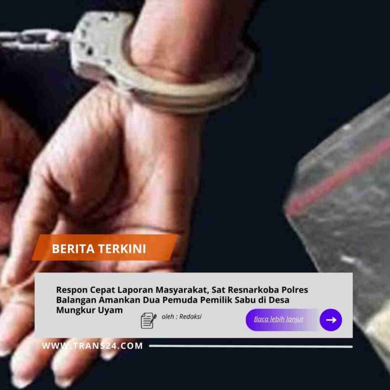 Polres Balangan//trans24.id Satuan Reserse Narkoba (Sat Resnarkoba) Polres Balangan kembali berhasil mengungkap kasus peredaran gelap narkotika jenis sabu di wilayah hukum Kabupaten Balangan. Dua orang pemuda diringkus petugas di sebuah rumah kontrakan di Desa Mungkur Uyam, Kecamatan Juai, pada hari Selasa (13/01/2026).