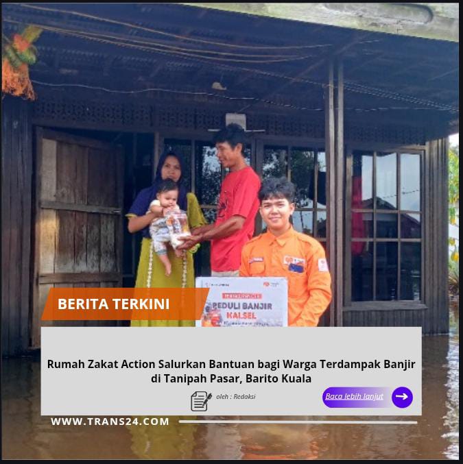 Barito Kuala, Kalimantan Selatan // trans24.id //— Rumah Zakat Action Kalimantan Selatan merespons bencana banjir yang melanda Desa Tanipah Pasar, Kecamatan Mandastana, Kabupaten Barito Kuala. Banjir dipicu oleh hujan deras yang mengguyur wilayah tersebut sejak malam hingga pagi hari, sehingga menyebabkan meningkatnya debit air sungai serta kiriman air dari wilayah hulu.