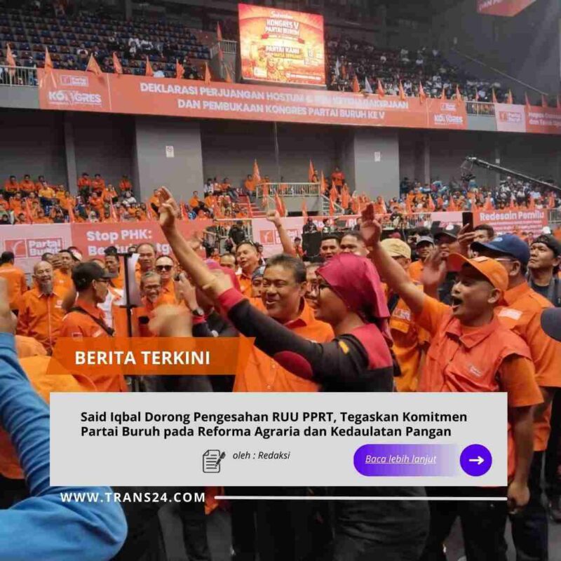 Jakarta, // trans24.id //- Presiden Partai Buruh, Said Iqbal menegaskan komitmen partainya dalam memperjuangkan hak-hak pekerja, reforma agraria, serta kedaulatan pangan nasional. Hal tersebut disampaikan saat Konfrensi Pers pada Kongres ke V Partai Buruh yang digelar di Kelapa Gading, Jakarta, Senin (19/1/2026).