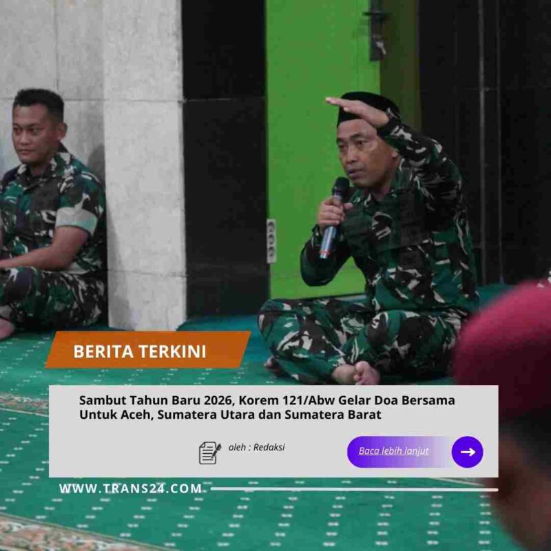 SINTANG//trans24.id – Jelang pergantian tahun dan menyambut tahun baru 2026, Korem 121/Abw menggelar acara doa bersama di Masjid Darul Muttaqin dan Aula Korem 121/Abw, Sintang, Kalimantan Barat, Rabu (31/12/2025).