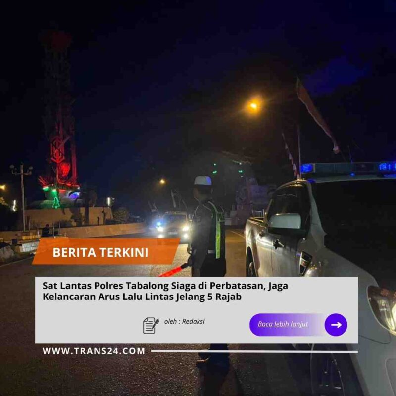Tabalong//trans24.id  – Menjelang momen keagamaan 5 Rajab, peningkatan arus lalu lintas terpantau signifikan di sejumlah titik strategis wilayah Kabupaten Tabalong. Menyikapi kondisi tersebut, Satuan Lalu Lintas Polres Tabalong yang dipimpin langsung oleh Kasat Lantas Polres Tabalong, Iptu Oki Hermawan, S.H., M.M., bersama jajaran anggota, melaksanakan pemantauan dan pengaturan arus lalu lintas secara langsung di kawasan perbatasan antar provinsi.