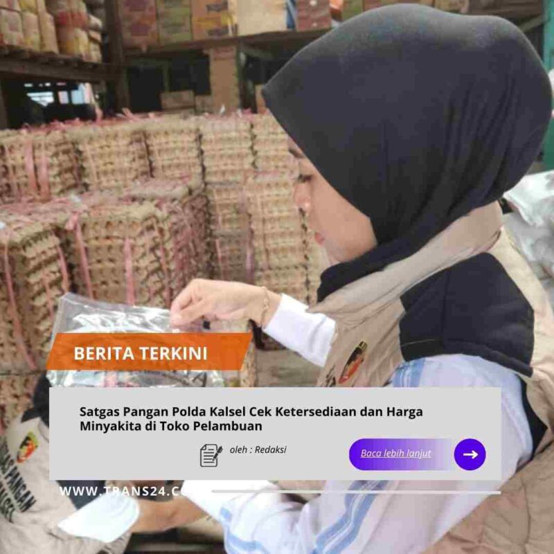 Kalimantan Selatan, // trans24.id //-Tim Satuan Tugas (Satgas) Pangan Polda Kalimantan Selatan (Kalsel) melakukan pengawasan dan pengecekan langsung terhadap ketersediaan dan harga minyak goreng merek Minyakita di tingkat pedagang eceran. Pengecekan ini menyasar salah satu toko kelontong, yakni Toko Hj. Maimunah yang berlokasi di Jalan Ir. P. M. Noor, Kelurahan Pelambuan, Kecamatan Banjarmasin Barat, Kota Banjarmasin, Kamis (22/1/2026) pagi.