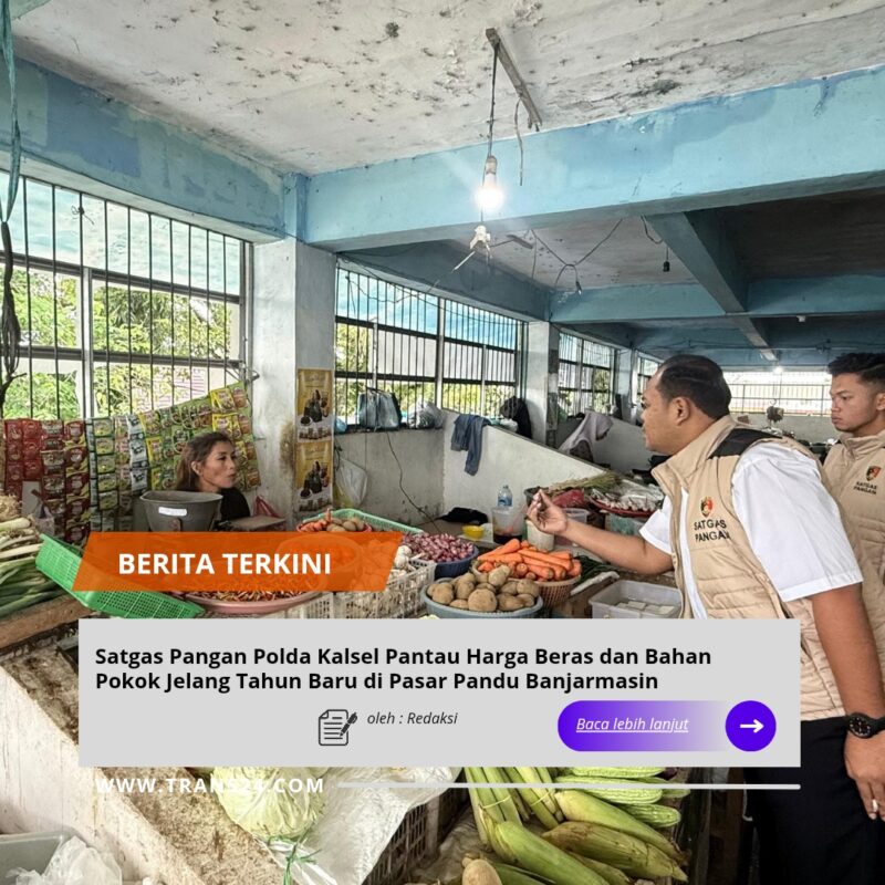 BANJARMASIN//trans24.id – Guna mengantisipasi gejolak harga dan memastikan stabilitas pasokan kebutuhan pokok masyarakat menyambut tahun baru 2026, Tim Satuan Tugas (Satgas) Pangan Polda Kalimantan Selatan melakukan pengecekan dan pemantauan langsung di lapangan. Kegiatan ini dipusatkan di Pasar Pandu, Banjarmasin, pada Senin (29/12/2025).