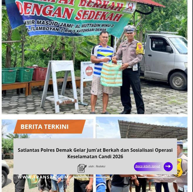 Demak, // trans24.id //- Satlantas Polres Demak melaksanakan kegiatan Jumat Berkah sekaligus sosialisasi pelaksanaan Operasi Keselamatan Candi 2026, Jumat (6/2/2026).