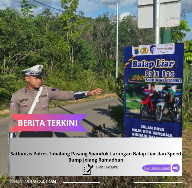 Tabalong, // trans24.id – Dalam upaya menekan aksi balap liar serta meminimalisir angka kecelakaan lalu lintas menjelang bulan suci Ramadhan, Polres Tabalong melalui Satuan Lalu Lintas (Satlantas) melaksanakan kegiatan pemasangan spanduk larangan balap liar serta pemasangan speed bump, Rabu (18/02/26) pagi.