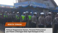 Perkuat Pengamanan Nataru, Personel Polres Garut dan Polsek Limbangan Gelar Apel Kesiapan di Pos Terpadu.