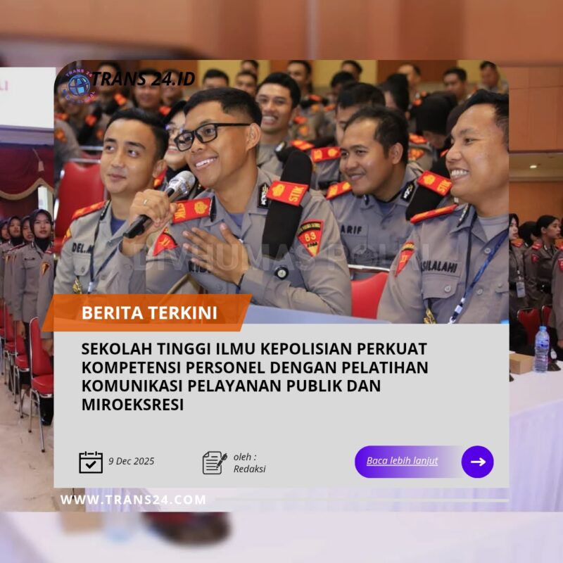 JAKARTA TIMUR//trans24.id – Sekolah Tinggi Ilmu Kepolisian (STIK) kembali menggelar pelatihan untuk meningkatkan kompetensi personel Polri dalam pelayanan publik. Pada 8-9 Desember, STIK mengadakan Pelatihan Komunikasi Pelayanan Publik dan Mikroekspresi sebagai bagian dari akselerasi Transformasi Polri.