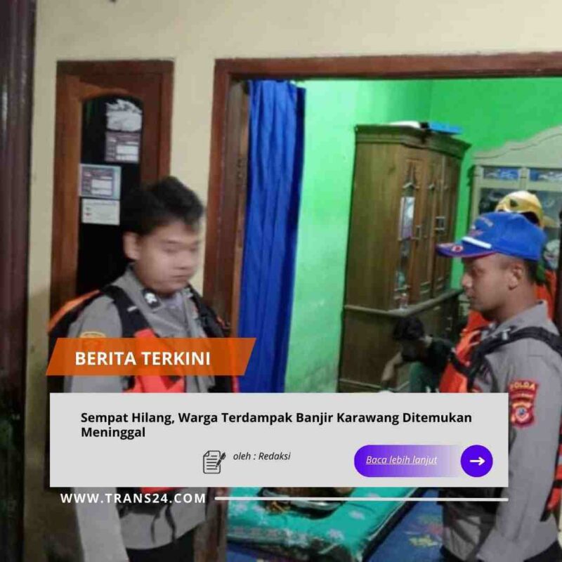 Karawang, // trans24.id // – Seorang warga terdampak banjir di Desa Karangligar Kabupaten Karawang, Jawa Barat, ditemukan meninggal dunia. Korban sebelumnya dilaporkan hilang.