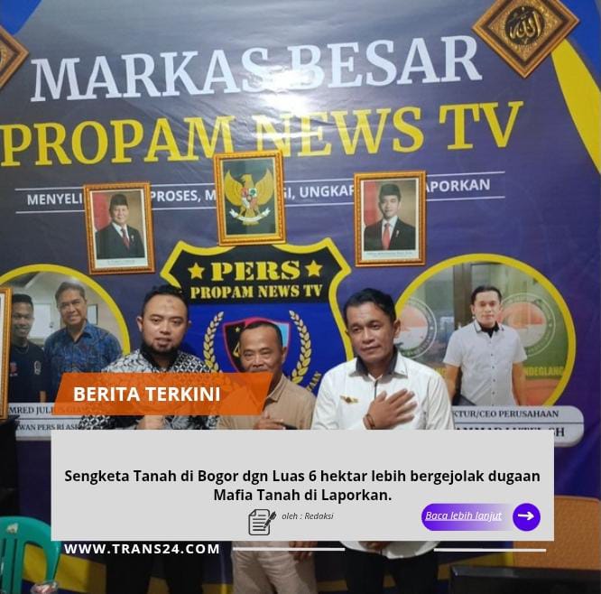 Bogor, // trans24.id //— Sengketa lahan seluas sekitar 6 hektare di wilayah Bogor kembali mencuat setelah ahli waris pemilik tanah mengaku lahannya diklaim pihak lain meski telah memiliki sertifikat resmi. Persoalan ini kini memasuki proses hukum dan turut dilaporkan ke Kementerian ATR/BPN melalui Satuan Tugas Pemberantasan Mafia Tanah.