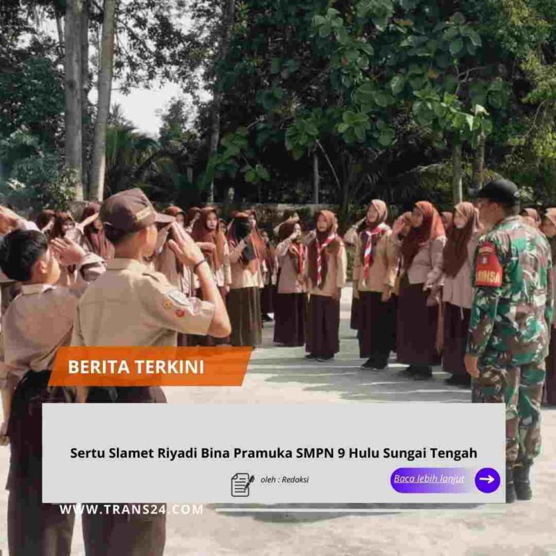 HULU SUNGAI TENGAH, // trans24.id //– Babinsa Koramil 1002-04/Labuan Amas Selatan, Sertu Slamet Riyadi, melaksanakan kegiatan pembinaan Pramuka kepada para siswa SMP Negeri 9 Hulu Sungai Tengah, Sabtu (24/01/2026).