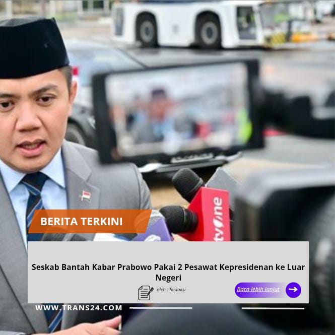 Jakarta, // trans24.id //- Sekretaris Kabinet (Seskab) Teddy Indra Wijaya membantah kabar Presiden Prabowo Subianto menggunakan dua pesawat kepresidenan saat berkunjung ke luar negeri (LN). Teddy memastikan Prabowo hanya memakai satu pesawat kepresidenan milik Garuda Indonesia.