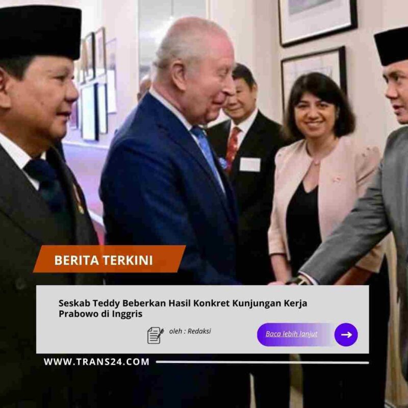 Jakarta, // trans24.id //- Sekretaris Kabinet Teddy Indra Wijaya mengungkapkan adanya komitmen investasi senilai 4 miliar poundsterling atau sekitar Rp 90 triliun dari Inggris. Ini merupakan hasil pertemuan Presiden Prabowo Subianto dengan Perdana Menteri Inggris Keir Starmer dalam kunjungan kerjanya Selasa (20/1/2026) hingga Rabu (21/1/2026).