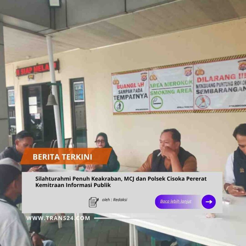 KABUPATEN TANGERANG (BANTEN)//trans24.id – Upaya mempererat sinergi dan membangun komunikasi yang konstruktif antara insan pers dan aparat penegak hukum terus dilakukan. Tim awak media yang tergabung dalam Media Center Jayanti (MCJ) melaksanakan silaturahmi ke Polsek Cisoka, Rabu (7/1/2026), sebagai wujud komitmen memperkuat kemitraan strategis demi terciptanya situasi keamanan dan ketertiban masyarakat (kamtibmas) yang kondusif.