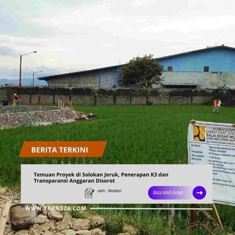 Kabupaten Bandung, // trans24.id //– Aktivitas pekerjaan proyek yang berada di Kampung Lalareun RT 03/RW 03, Desa Rancakasumba, Kecamatan Solokan Jeruk, Kabupaten Bandung, menjadi sorotan setelah awak media PropamNews TV menemukan sejumlah temuan di lapangan yang dinilai perlu mendapatkan perhatian serius dari pihak terkait.