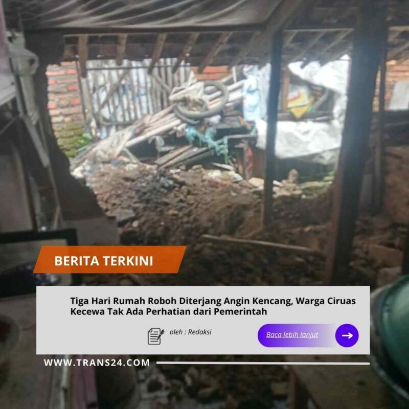 Serang//trans24.id – Nasib malang menimpa Sri Rahayu, warga Kampung Cembeh, RT 02/RW 01, Desa Ciruas, Kecamatan Ciruas, Kabupaten Serang. Rumah tinggalnya roboh akibat cuaca ekstrem berupa curah hujan tinggi dan angin kencang yang melanda wilayah tersebut. Namun, hingga kini bantuan maupun perhatian dari pemerintah setempat tak kunjung datang.