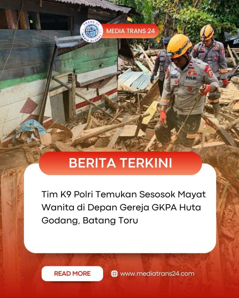 SUMUT//trans24.id – Tim gabungan Unit K9 SAR Mabes Polri, Unit K9 Polda Sumut, serta Sat Brimob Batalyon C Polda Sumut menemukan sesosok mayat wanita di depan Gereja GKPA Desa Huta Godang, Kabupaten Batang Toru, pada Kamis (4/12/2025). Penemuan ini berawal dari laporan masyarakat yang mencium bau menyengat di sekitar lokasi.
