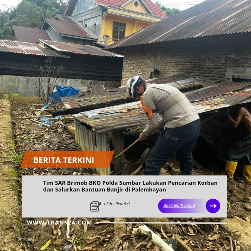 Agam//trans24.id Tim SAR Resimen II Pasukan Pelopor BKO Polda Sumatera Barat terus bergerak membantu masyarakat terdampak bencana banjir di wilayah Sumatera Barat. Tim melaksanakan kegiatan pencarian korban sekaligus penyaluran bantuan kemanusiaan di Kecamatan Palembayan, Kabupaten Agam.
