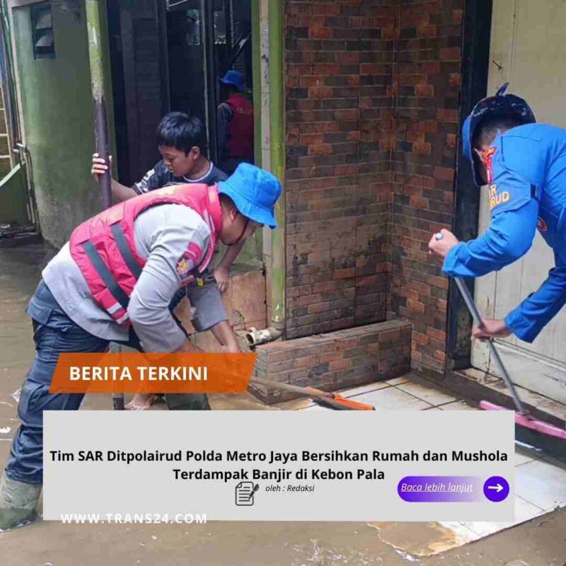 Tim SAR Ditpolairud Polda Metro Jaya Bersihkan Rumah dan Mushola Terdampak Banjir di Kebon Pala