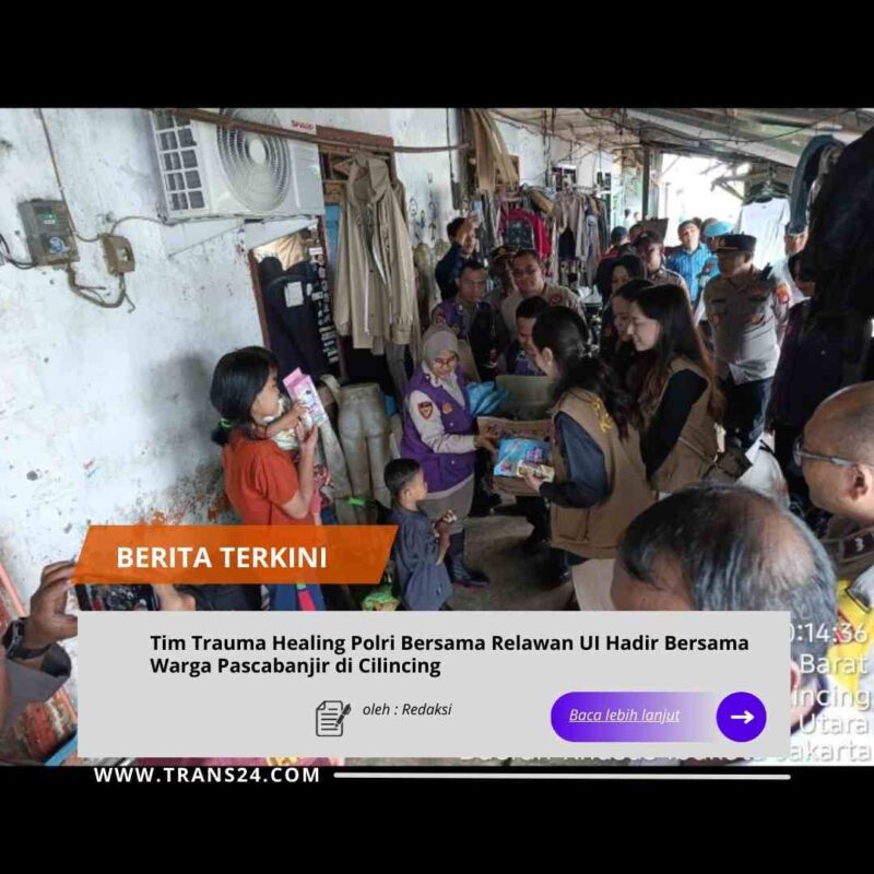 Di tengah proses pemulihan tersebut, Kepolisian Negara Republik Indonesia melalui Biro SDM Polda Metro Jaya menghadirkan tim trauma healing bersama relawan mahasiswa Universitas Indonesia untuk mendampingi warga, Rabu (14/1/2026). Kehadiran ini difokuskan pada pemulihan psikologis masyarakat, khususnya anak-anak dan ibu-ibu, yang masih merasakan dampak pascabanjir.