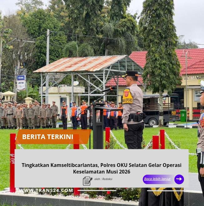 OKU Selatan, // trans24.id //-Dalam rangka meningkatkan keamanan, keselamatan, ketertiban, dan kelancaran lalu lintas (Kamseltibcarlantas), Polres OKU Selatan menggelar Operasi Keselamatan Musi 2026 yang diawali dengan pelaksanaan apel gelar pasukan. Kegiatan ini dilaksanakan sebagai bentuk kesiapan Polri bersama instansi terkait dalam menciptakan budaya tertib berlalu lintas di wilayah Kabupaten OKU Selatan.