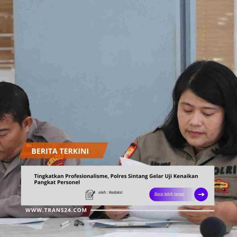 SINTANG, // trans24.id // – Kepolisian Resor (Polres) Sintang menyelenggarakan kegiatan Uji Kenaikan Pangkat (UKP) bagi personel yang akan diusulkan naik pangkat periode mendatang. Kegiatan ini berlangsung dengan khidmat di Aula Polres Sintang pada Kamis pagi (22/1/2026).