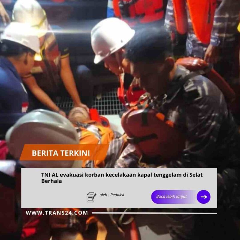 Jakarta //trans24.id Personel TNI Angkatan Laut menyelamatkan korban kecelakaan kapal pompong kayu yang terbalik dan tenggelam karena gelombang tinggi saat berlayar di perairan Selat Berhala, Jambi, pada Jumat (9/1).