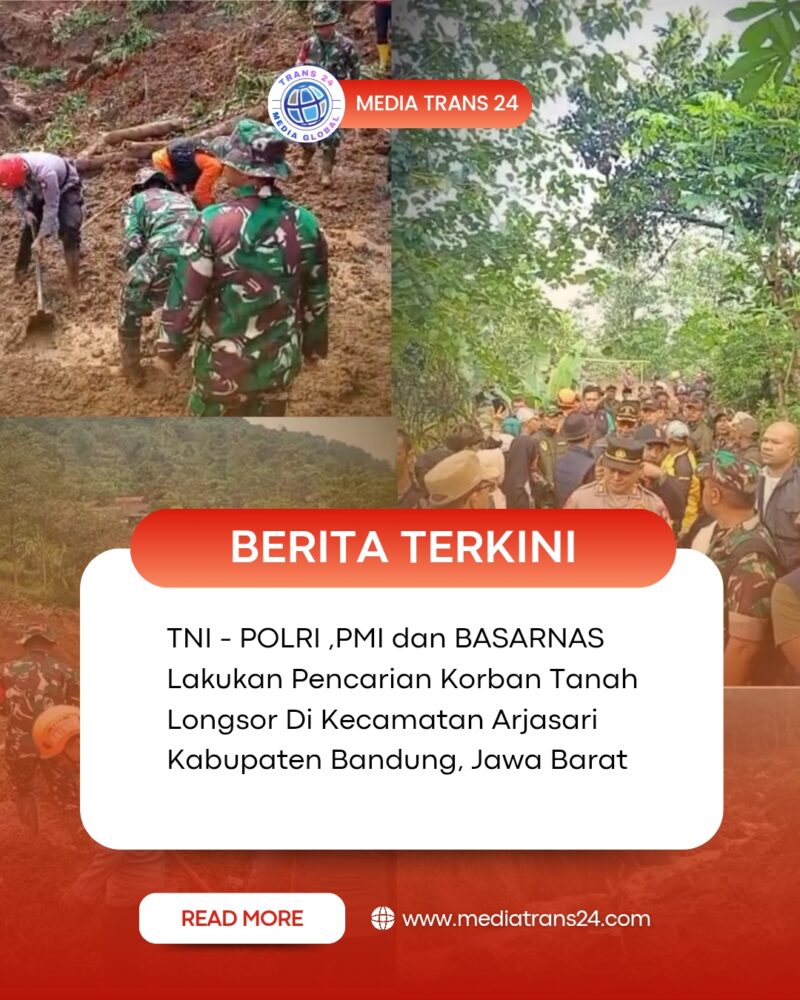 Bandung//trans24.id – Gabungan TNI Polri, BASARNAS dan PMI Kabupaten Bandung secara bersama mencari para Korban akibat tertimbun Tanah Longsor di Desa Marga Luyu, Kecamatan Arjasari, Kabupaten Bandung yang Terjadi pada Jum’at, 05/12/2025 lalu.