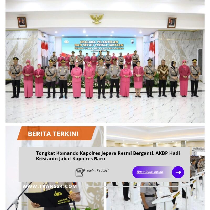 Jepara//trans24.id – Tongkat komando Kapolres Jepara resmi berpindah tangan. Jabatan Kapolres Jepara kini diemban oleh AKBP Hadi Kristanto menggantikan AKBP Erick Budi Santoso.