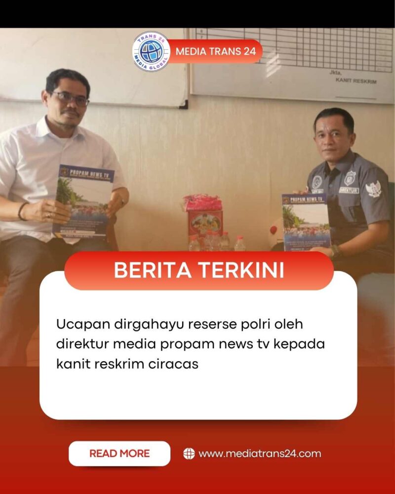 JAKARTA//trans24.id Kunjungan direktur pt media propam news tv ke polsek ciracas jakarta timur semata-mata memberikan ucapan selamat dirgahayu reserse polri khusus nya kepada kanit reskrim polsek ciracas HASNAN.N,SH,semoga kedepan nya seluruh reserse polri semakin maju menuju polri presisi yang bisa melayani masyarakat lebih baik lagi.”ungkap direktur media propam news tv kepada kanit reskrim Ciracas, tepat nya di ruangan reskrim pada tanggal 8 desember 2025.dan bapak hasnan selaku kanit mengucapkan terimakasih khusus nya kepada mohammad lutfi selaku direktur pt media propam news tv yang sudah memberikan ucapan selamat dirgahayu kepada kami dan semoga media propam tambah maju”ungkap kanit reskrim.