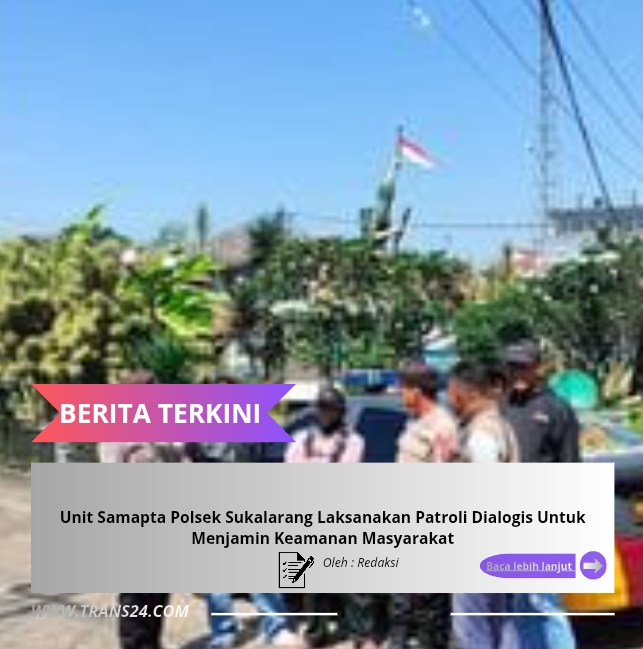 Sukabumi, // trans24.id – Unit Samapta Polsek Sukalarang Polres Sukabumi Kota melaksanakan kegiatan Patroli Dialogis, bertujuan memberikan rasa aman dan nyaman kepada masyarakat serta mencegah berbagai bentuk aksi kejahatan. Hal ini merupakan bagian dari jalannya program Kapolri dalam peningkatan pengamanan di Siang maupun Malam hari.
