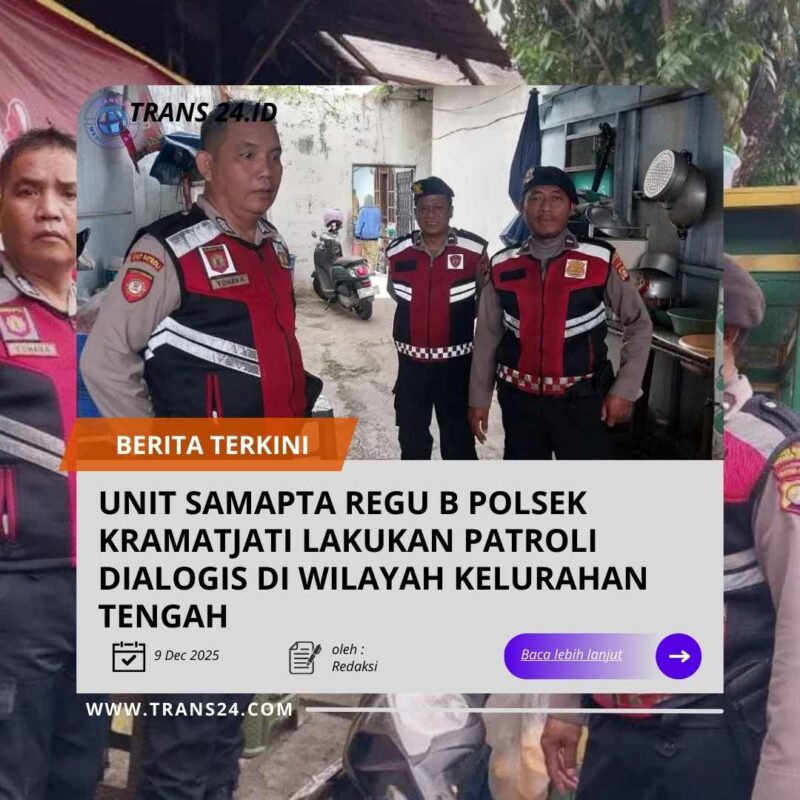 Jakarta Timur//trans24.id – Dalam upaya meningkatkan keamanan dan ketertiban masyarakat, Unit Samapta Regu B Polsek Kramatjati, dipimpin AIPDA WIDODO, melaksanakan patroli dialogis di wilayah Kelurahan Tengah Kec. Kramatjati Jaktim. Kegiatan ini bertujuan untuk menjalin komunikasi dengan warga setempat dan mendengarkan aspirasi serta keluhan mereka.
