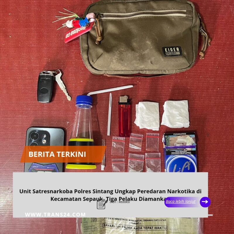 Sintang, // trans24.id // – Unit Satuan Reserse Narkoba Polres Sintang berhasil mengungkap kasus peredaran narkotika di wilayah Kabupaten Sintang. Dalam pengungkapan tersebut, petugas kepolisian mengamankan tiga orang pelaku beserta sejumlah barang bukti yang diduga narkotika jenis sabu.